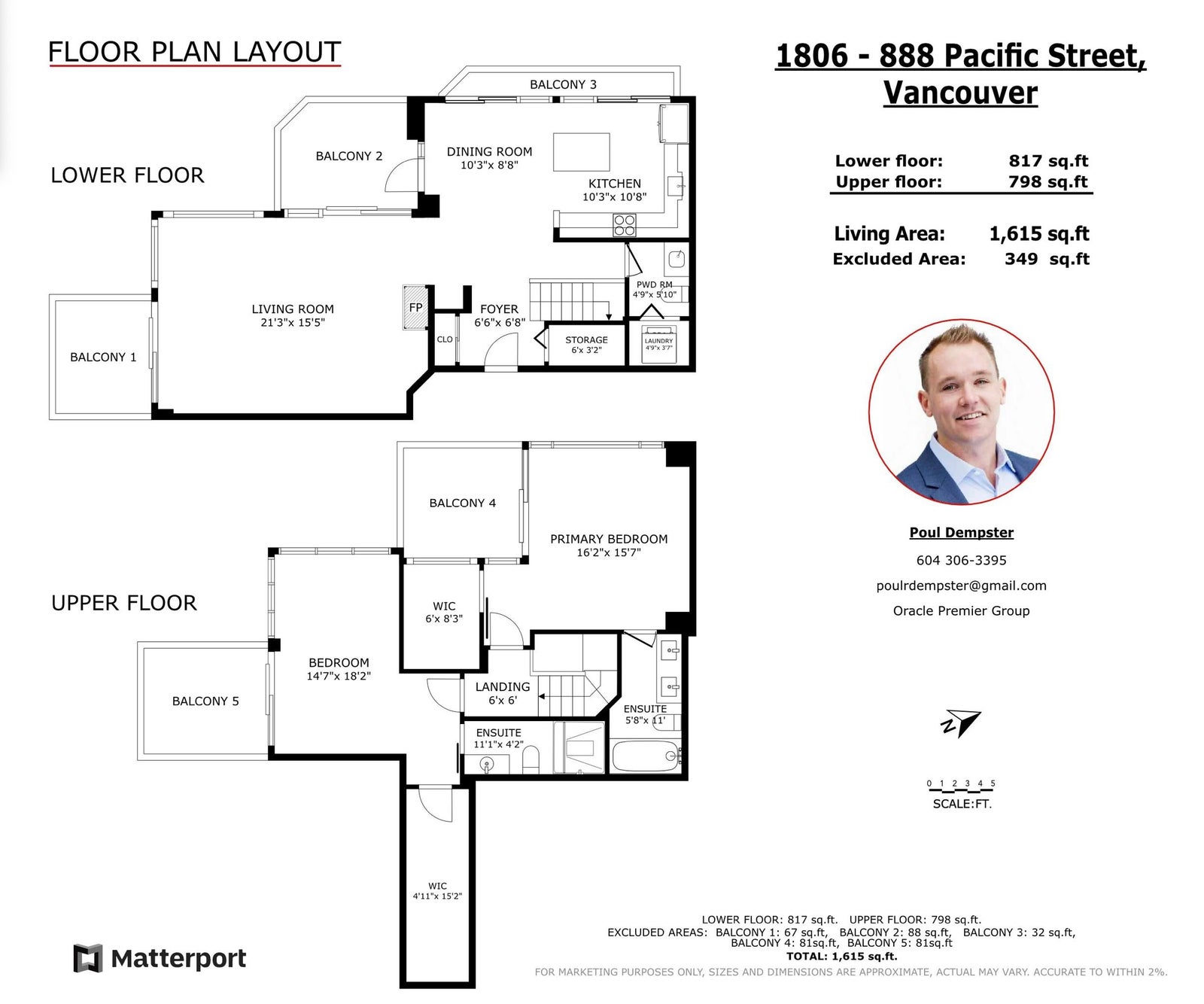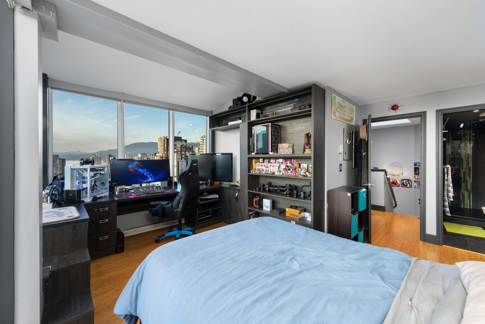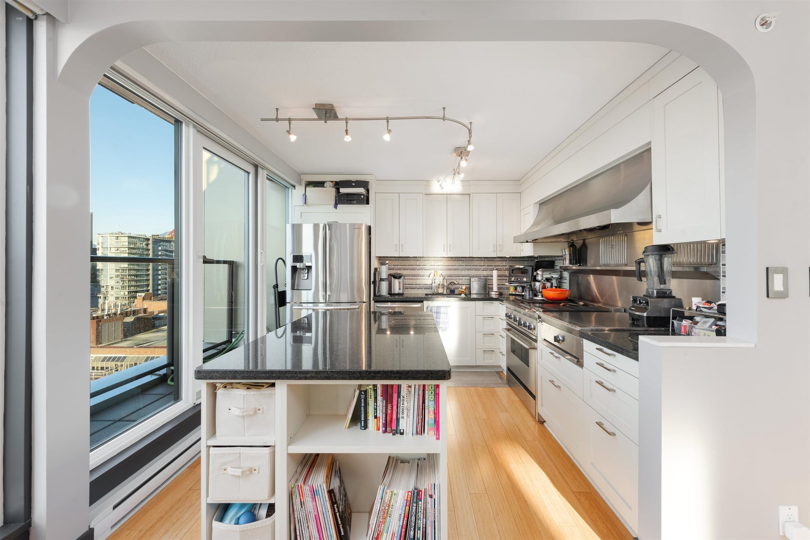 TWO LEVEL CORNER PENTHOUSE. Experience unparalleled luxury in this custom-renovated penthouse with sweeping southwest views of the ocean and mountains. Spanning 1615sqft, this residence offers refined living spaces with extensive updates. Key features include bamboo floors, a modernized kitchen with a new island, and an open-plan living room. Luxurious touches in the bathrooms include Swarovski crystal fixtures, an imported Italian rain shower, alongside practical upgrades,AC units and bespoke cabinetry for enhanced storage. The penthouse also boasts extensive building remediation, updating everything from building envelope, windows, patios, roof, exterior. With 5 balconies, 4 parking stalls and locker. Amenities: pool, hot tub, gym, clubhouse squash/basketball court. Motivated Seller!