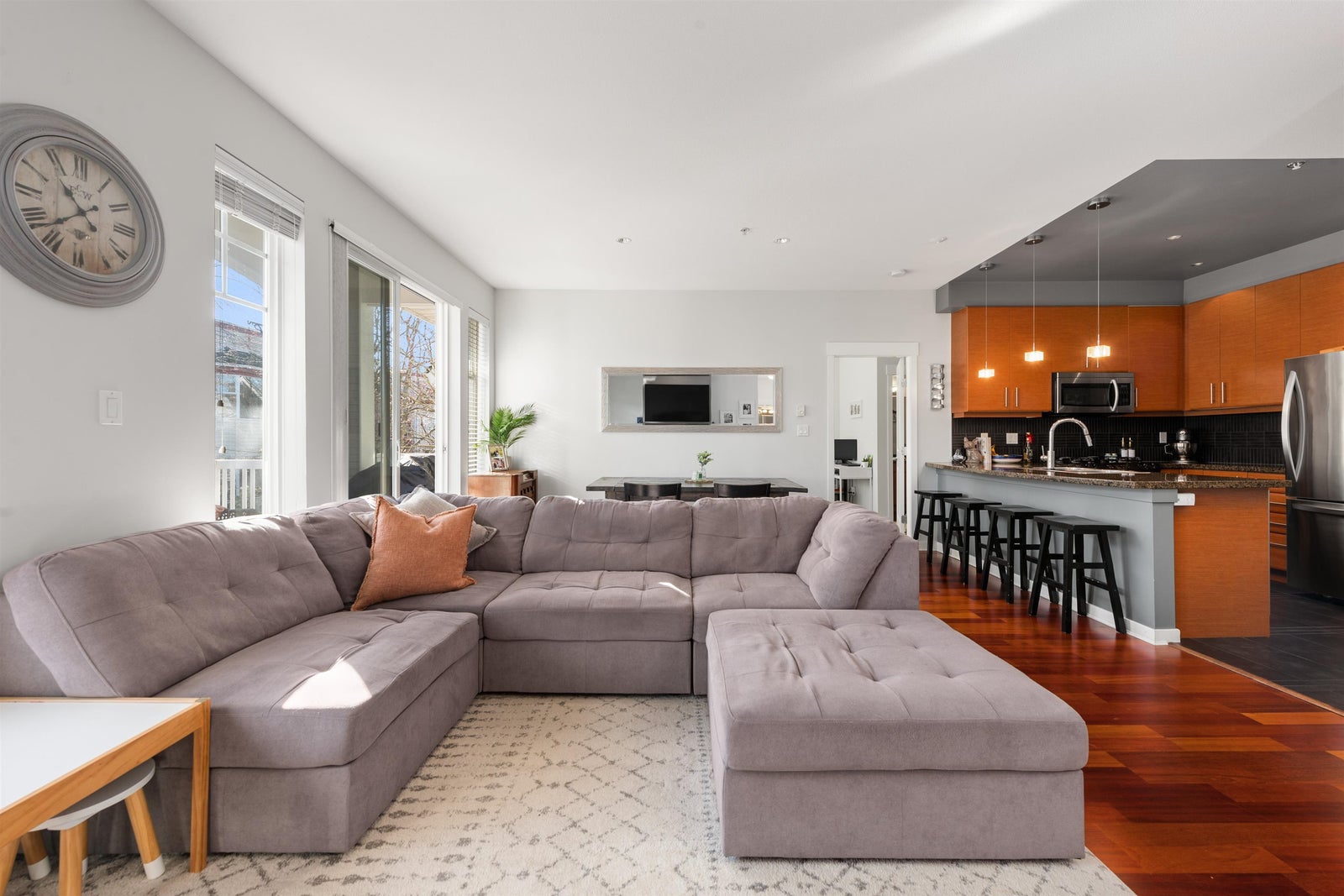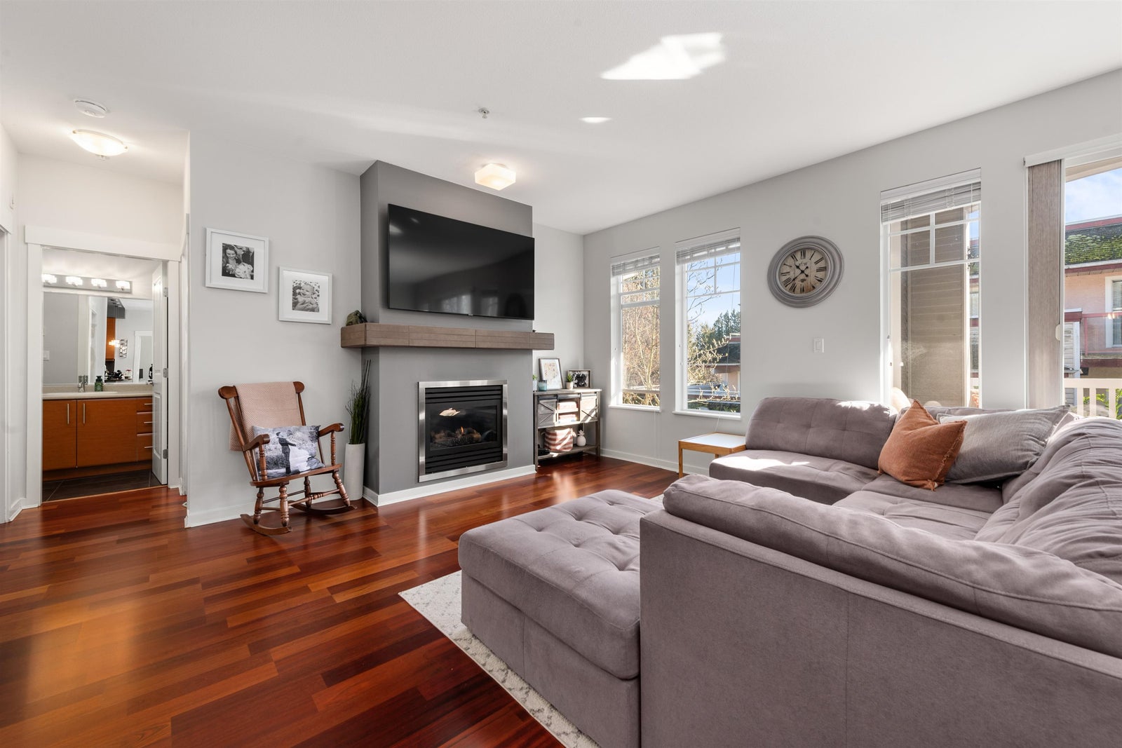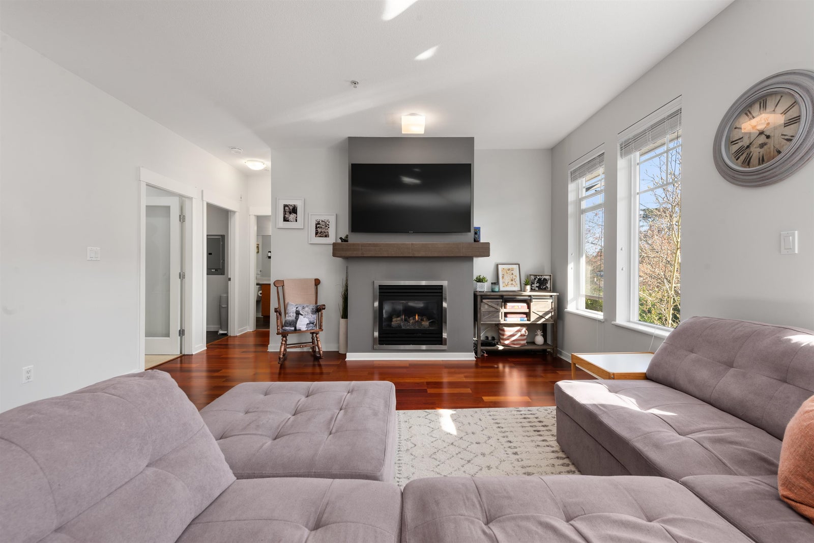 Welcome to your exceptional top-floor, corner unit at Heron Cove in The Pillars, spanning over 1073 sq.ft. This 2-bedroom plus den home is designed for supreme comfort and privacy, with bedrooms on opposite ends and soaring 9 ft. ceilings. Large windows enhance the living room, complete with a cozy gas fireplace for chilly evenings. The south-facing deck offers a perfect spot for sunny afternoons and BBQs. The kitchen, a culinary haven, features granite countertops, stainless steel appliances, and a gas stove, plus newly updated appliances. The master bedroom, spacious and inviting, includes a walk-in closet and a 4-piece ensuite with a soaker tub. Added conveniences include a full-size washer/dryer, ample storage, two side-by-side parking spaces, and a storage locker.