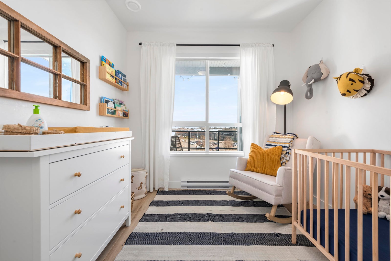 Experience the epitome of penthouse living at Peregrine North in the vibrant Tsawwassen Shores. This 2 bedroom + den home captivates with floor-to-ceiling windows that fill the space with natural light and offer stunning mountain views. Spanning 972 sqft, it features towering 12-foot ceilings and an open floor plan that amplifies its expansive feel. The kitchen is a dream with integrated appliances for a clean aesthetic, stainless steel range and elegant quartz countertops. A central island provides convenient seating. The primary bedroom boasts a spacious walk-in closet and a luxurious ensuite. A generously sized second bedroom and a customized den, converted into a third bedroom, enhance this unit’s appeal. Included are 2 parking stalls, with 1 EV charging and locker. MUST SEE!