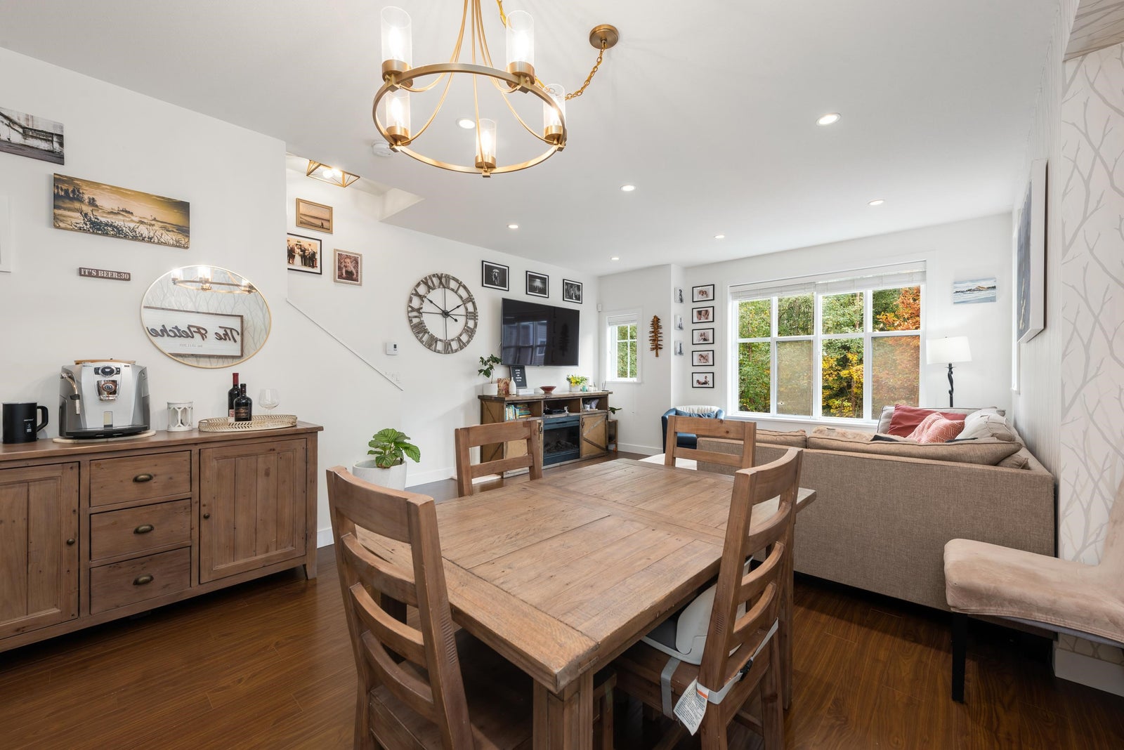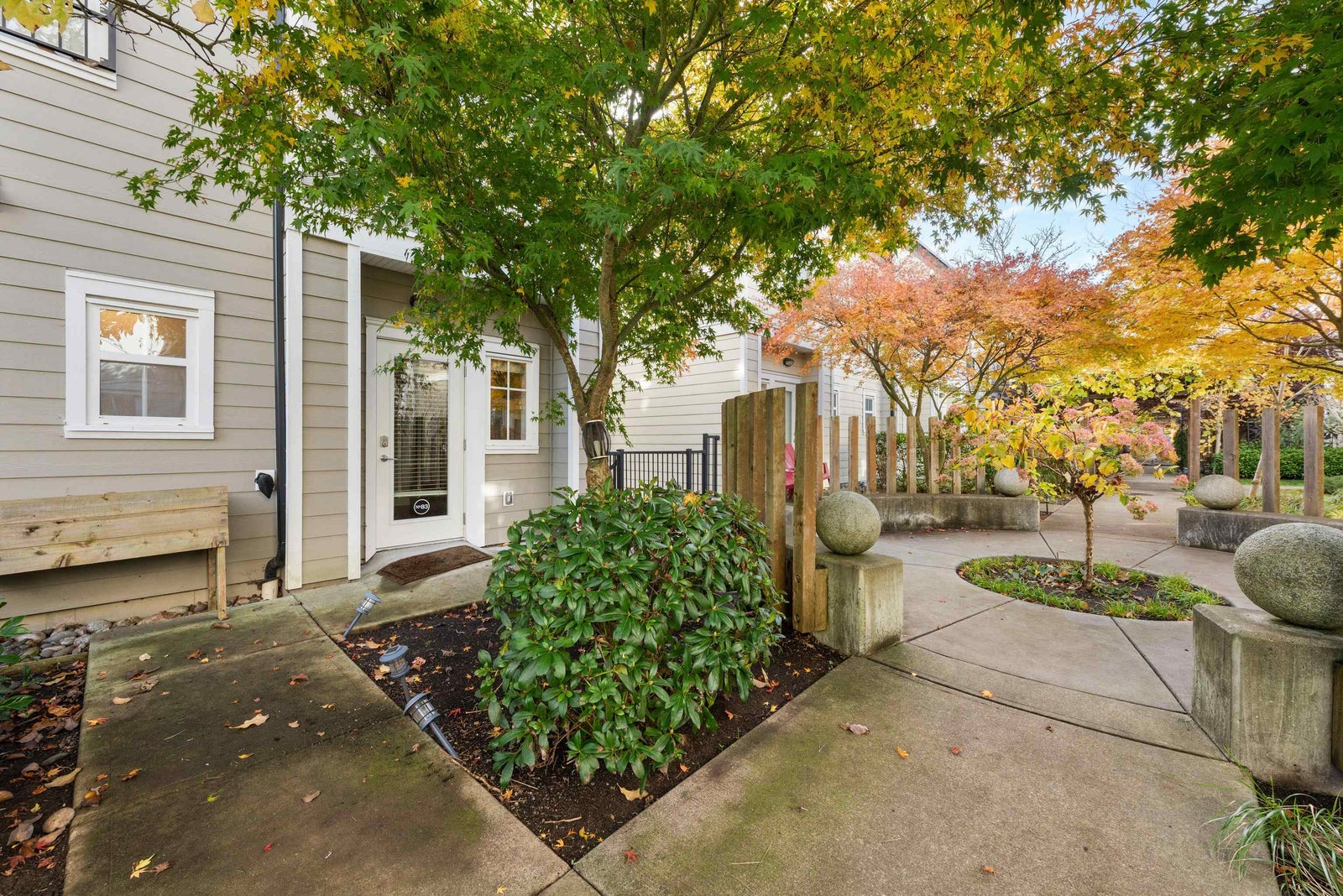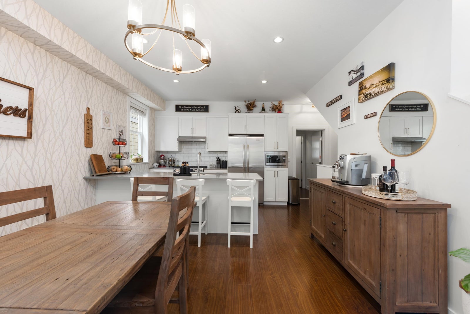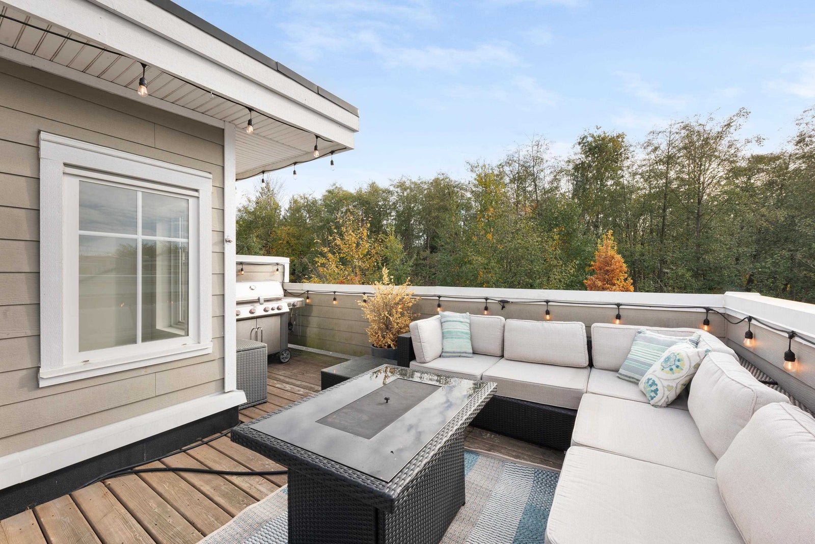 THE WOODS – Stunning END UNIT with serene GREENSPACE VIEWS! Built by GRAMERCY, this distinctive community blends modern design with timeless East Coast charm. Exceptional craftsmanship throughout, featuring 9-ft ceilings, a sleek contemporary kitchen with stainless steel appliances including gas range, quartz countertops, and elegant wide-plank laminate flooring. The BRIGHT & OPEN 3-bedroom plus DEN/OFFICE layout or optional 4th bedroom offers flexible living for any lifestyle. Zoned LIVE/WORK, take advantage of the dedicated studio or office with its own bathroom on the main level. Elevate your evenings on the ROOFTOP PATIO—perfect for entertaining, unwinding, and soaking in the view! Ideally located near shopping, restaurants, and cafés, with quick highway access for easy commuting.