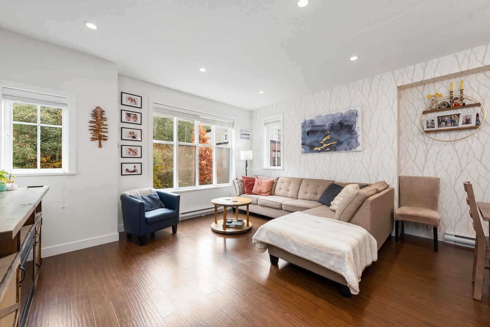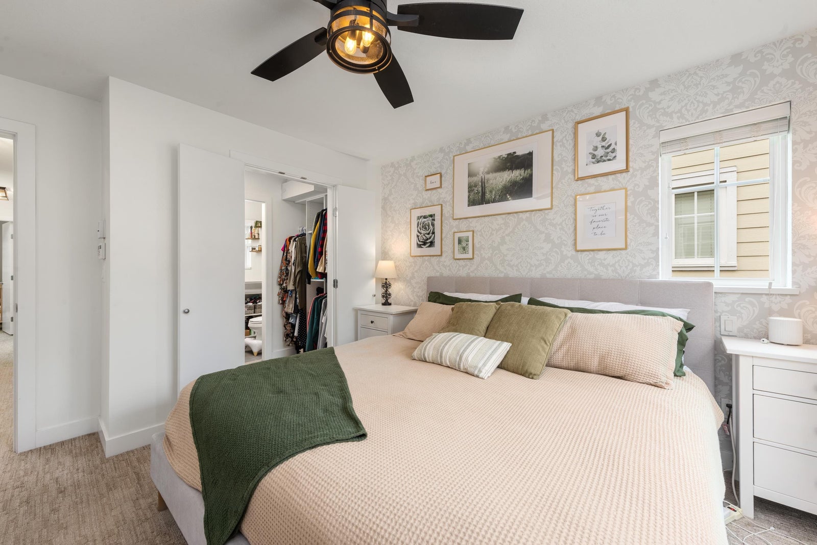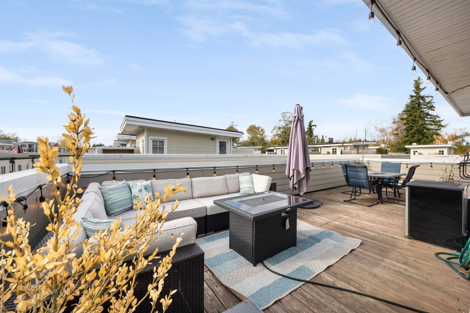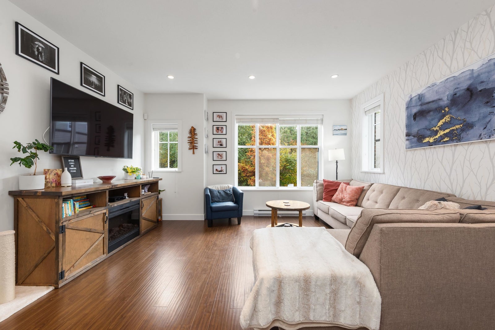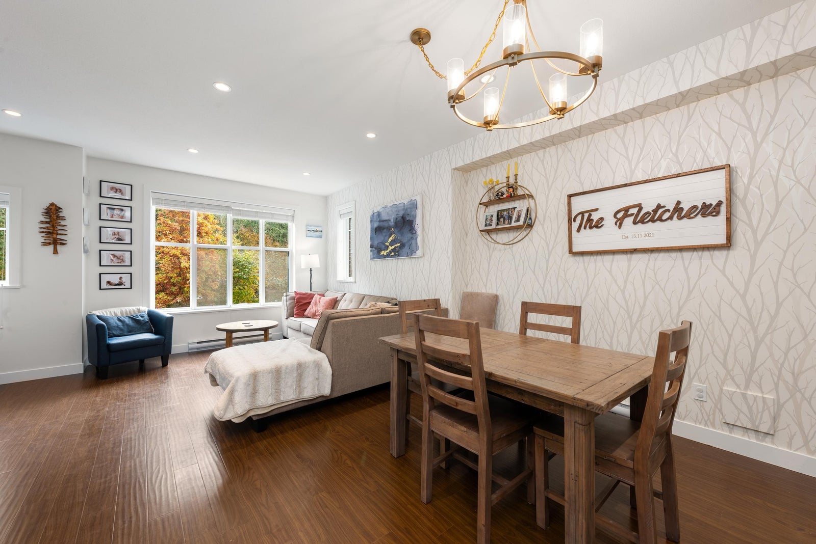 THE WOODS – Stunning END UNIT with serene GREENSPACE VIEWS! Built by GRAMERCY, this distinctive community blends modern design with timeless East Coast charm. Exceptional craftsmanship throughout, featuring 9-ft ceilings, a sleek contemporary kitchen with stainless steel appliances including gas range, quartz countertops, and elegant wide-plank laminate flooring. The BRIGHT & OPEN 3-bedroom plus DEN/OFFICE layout or optional 4th bedroom offers flexible living for any lifestyle. Zoned LIVE/WORK, take advantage of the dedicated studio or office with its own bathroom on the main level. Elevate your evenings on the ROOFTOP PATIO—perfect for entertaining, unwinding, and soaking in the view! Ideally located near shopping, restaurants, and cafés, with quick highway access for easy commuting.