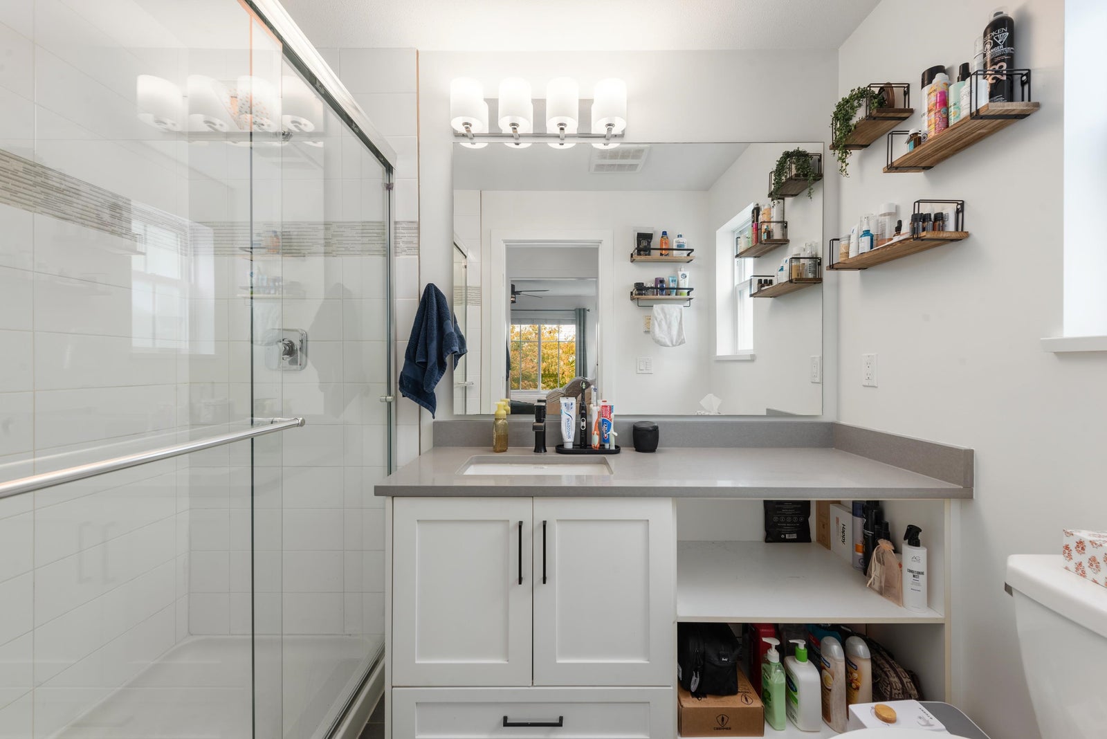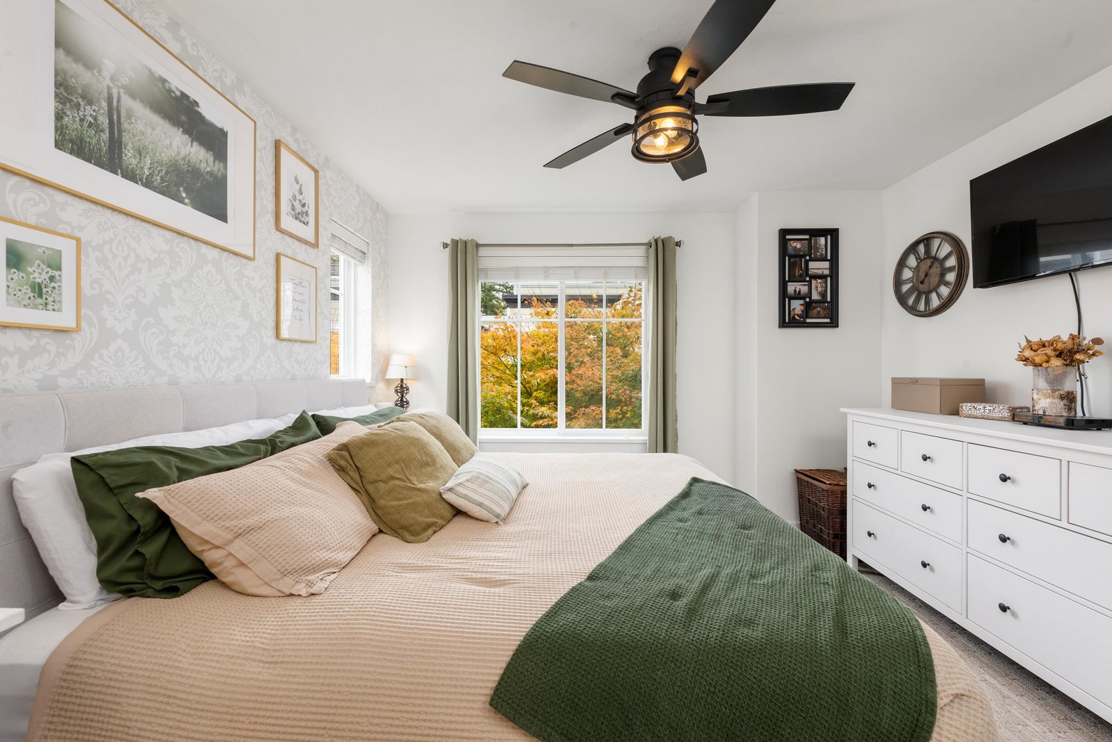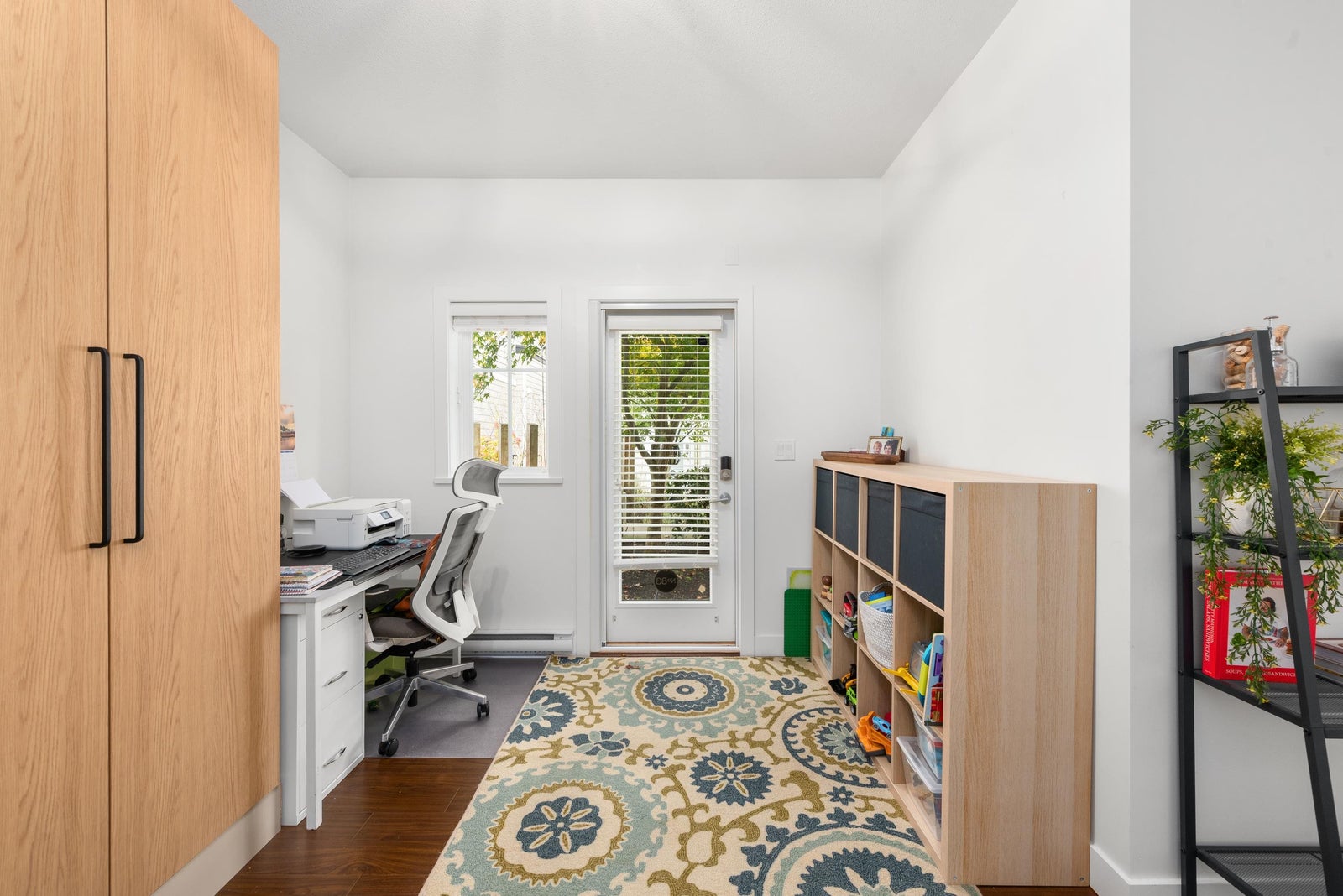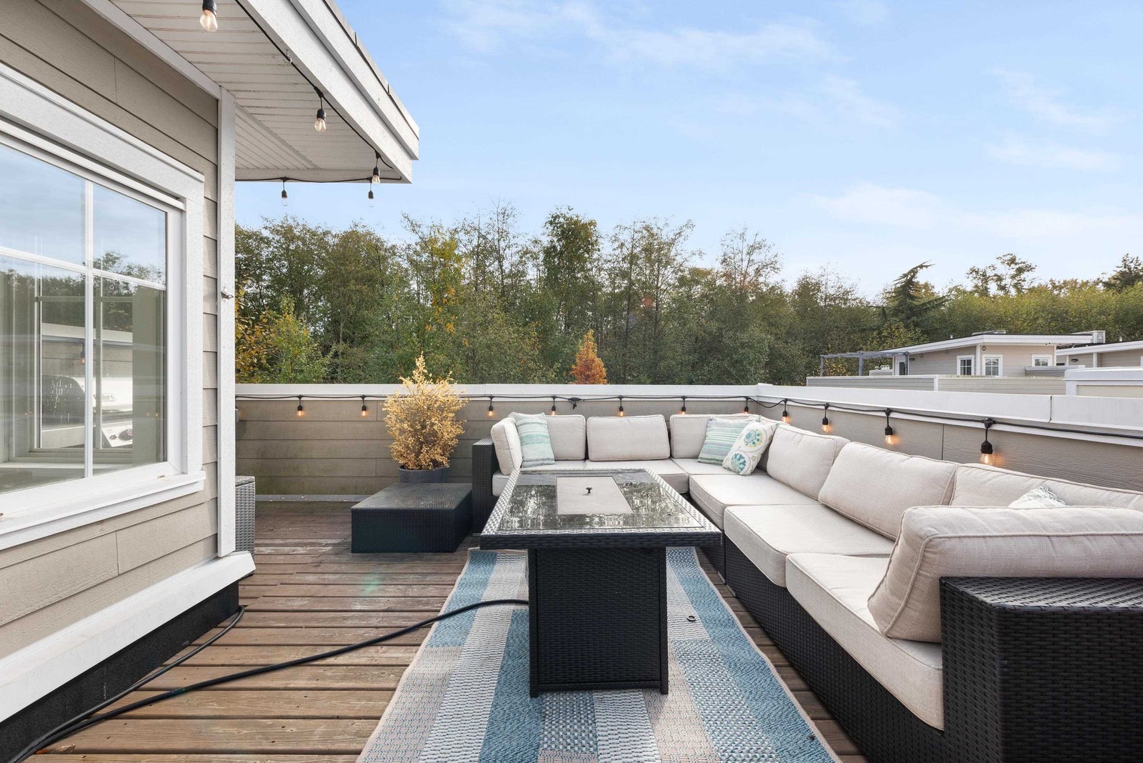 THE WOODS – Stunning END UNIT with serene GREENSPACE VIEWS! Built by GRAMERCY, this distinctive community blends modern design with timeless East Coast charm. Exceptional craftsmanship throughout, featuring 9-ft ceilings, a sleek contemporary kitchen with stainless steel appliances including gas range, quartz countertops, and elegant wide-plank laminate flooring. The BRIGHT & OPEN 3-bedroom plus DEN/OFFICE layout or optional 4th bedroom offers flexible living for any lifestyle. Zoned LIVE/WORK, take advantage of the dedicated studio or office with its own bathroom on the main level. Elevate your evenings on the ROOFTOP PATIO—perfect for entertaining, unwinding, and soaking in the view! Ideally located near shopping, restaurants, and cafés, with quick highway access for easy commuting.