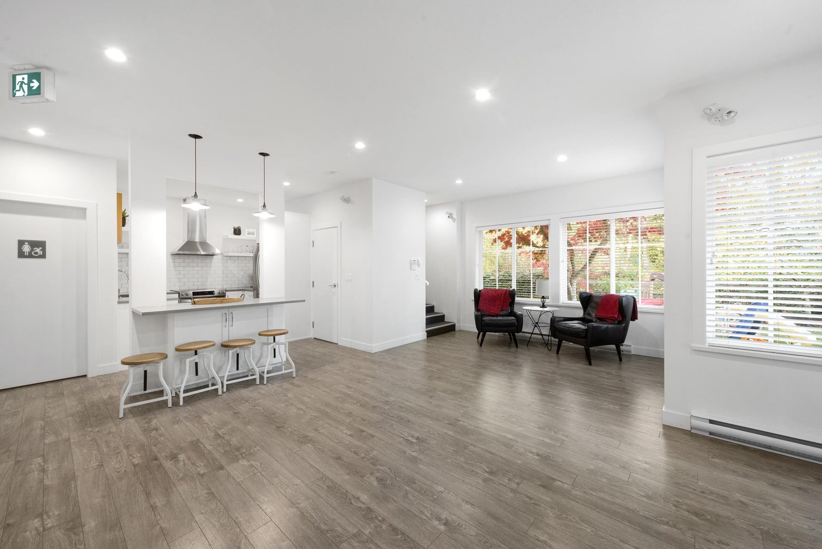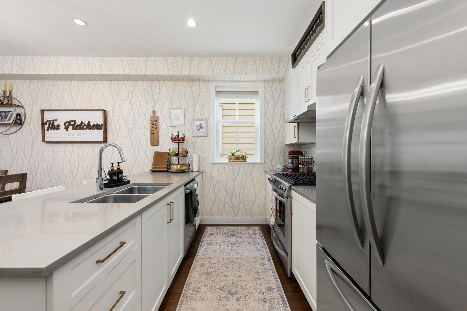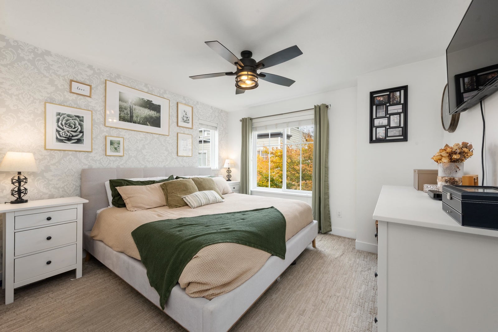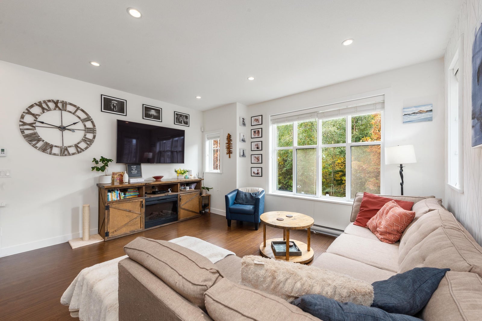 THE WOODS – Stunning END UNIT with serene GREENSPACE VIEWS! Built by GRAMERCY, this distinctive community blends modern design with timeless East Coast charm. Exceptional craftsmanship throughout, featuring 9-ft ceilings, a sleek contemporary kitchen with stainless steel appliances including gas range, quartz countertops, and elegant wide-plank laminate flooring. The BRIGHT & OPEN 3-bedroom plus DEN/OFFICE layout or optional 4th bedroom offers flexible living for any lifestyle. Zoned LIVE/WORK, take advantage of the dedicated studio or office with its own bathroom on the main level. Elevate your evenings on the ROOFTOP PATIO—perfect for entertaining, unwinding, and soaking in the view! Ideally located near shopping, restaurants, and cafés, with quick highway access for easy commuting.