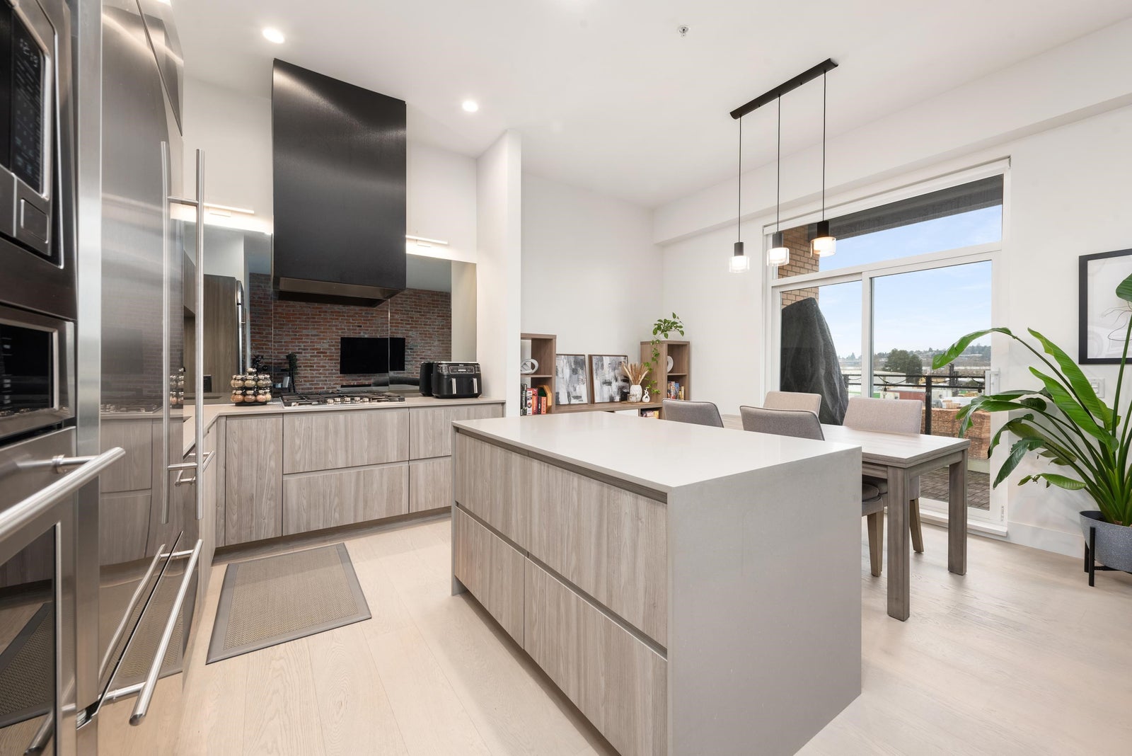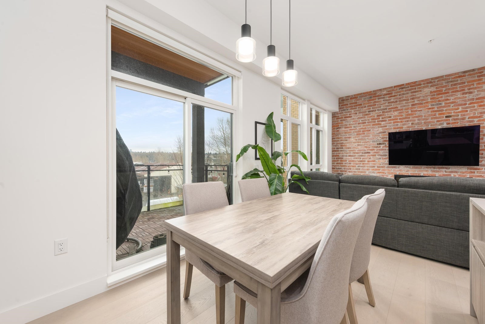 Loft-style 1 bed, 1 bath condo at #303–300 Salter Street in New Westminster. This stylish home features an exposed brick feature wall, open-concept layout, and premium Monogram appliances with a gas range. Northwest-facing city and mountain views offer stunning sunsets and natural light. Step outside to the Riverwalk at your door and enjoy convenient access to the ferry connecting to New West Quay. Ideal for professionals seeking a unique urban lifestyle close to transit, shops, dining, and the waterfront.