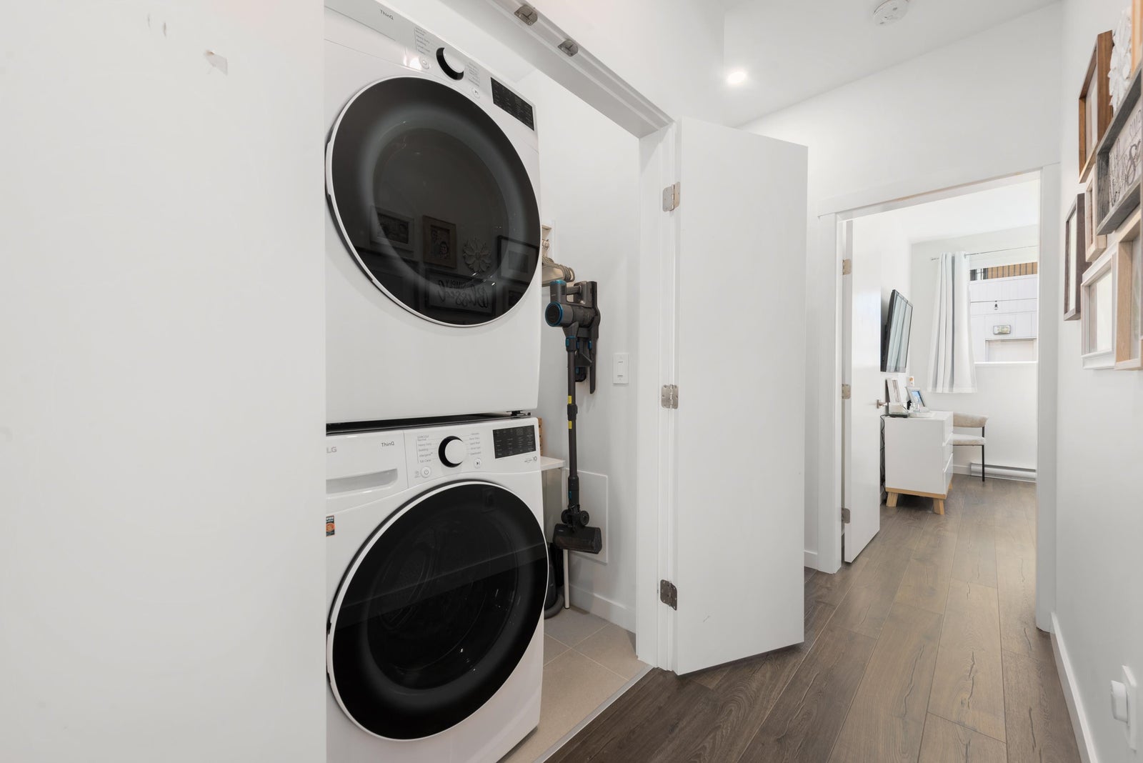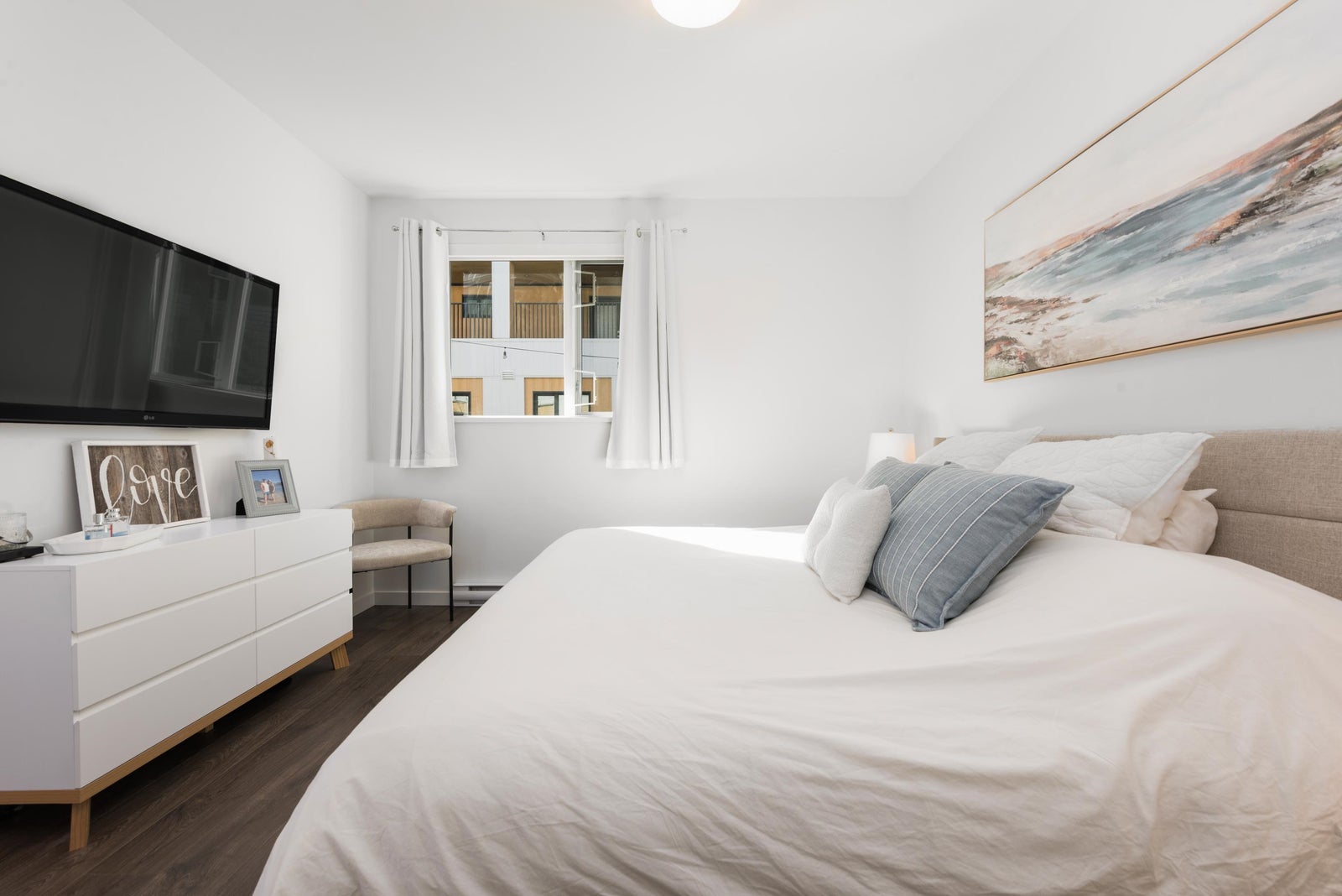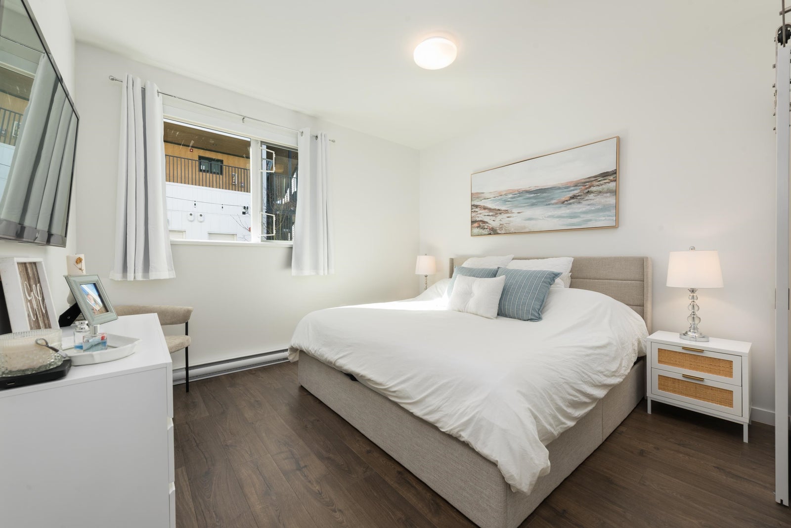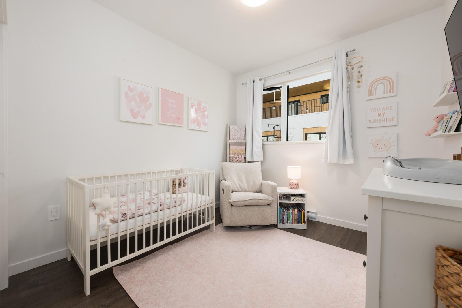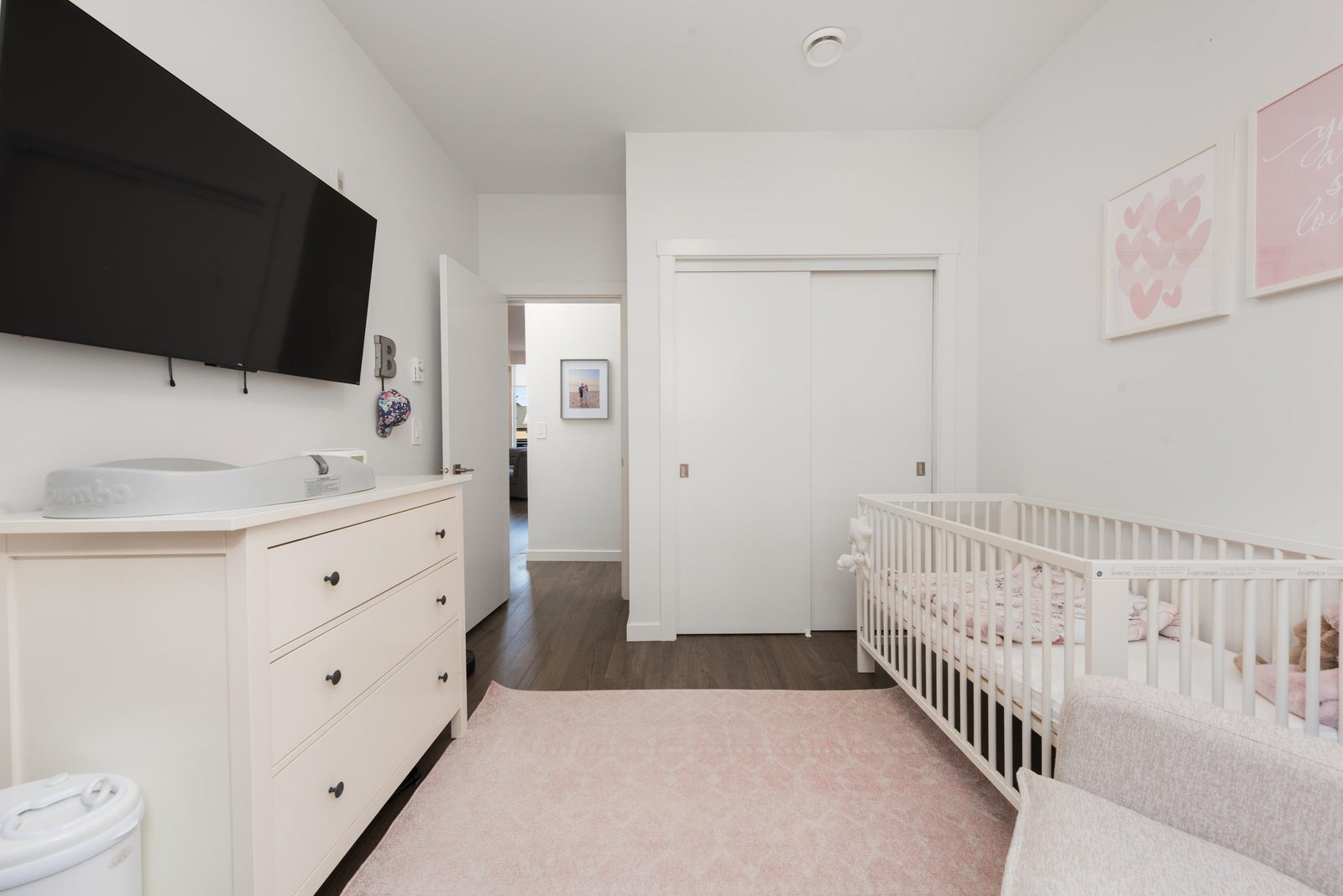 Tucked away on the quiet east side of District Flats, this 2 bed, 2 bath ground-floor corner home offers a rare blend of privacy, natural light, and thoughtful design. With 917 sqft of well-planned space, enjoy overheight ceilings throughout and soaring 12-ft ceilings in the living area, creating an open, airy feel rarely found on the ground level. This east-facing position brings softer morning light, cooler afternoons, and noticeably less foot and vehicle traffic for a more peaceful setting. The open layout flows to a spacious 171sqft patio, perfect for indoor-outdoor living. Steps to Southlands amenities, local shops, and trails, and a short walk to Boundary Bay Beach. Includes 2 underground parking stalls, bike storage, and a 3-year-old building still under warranty.