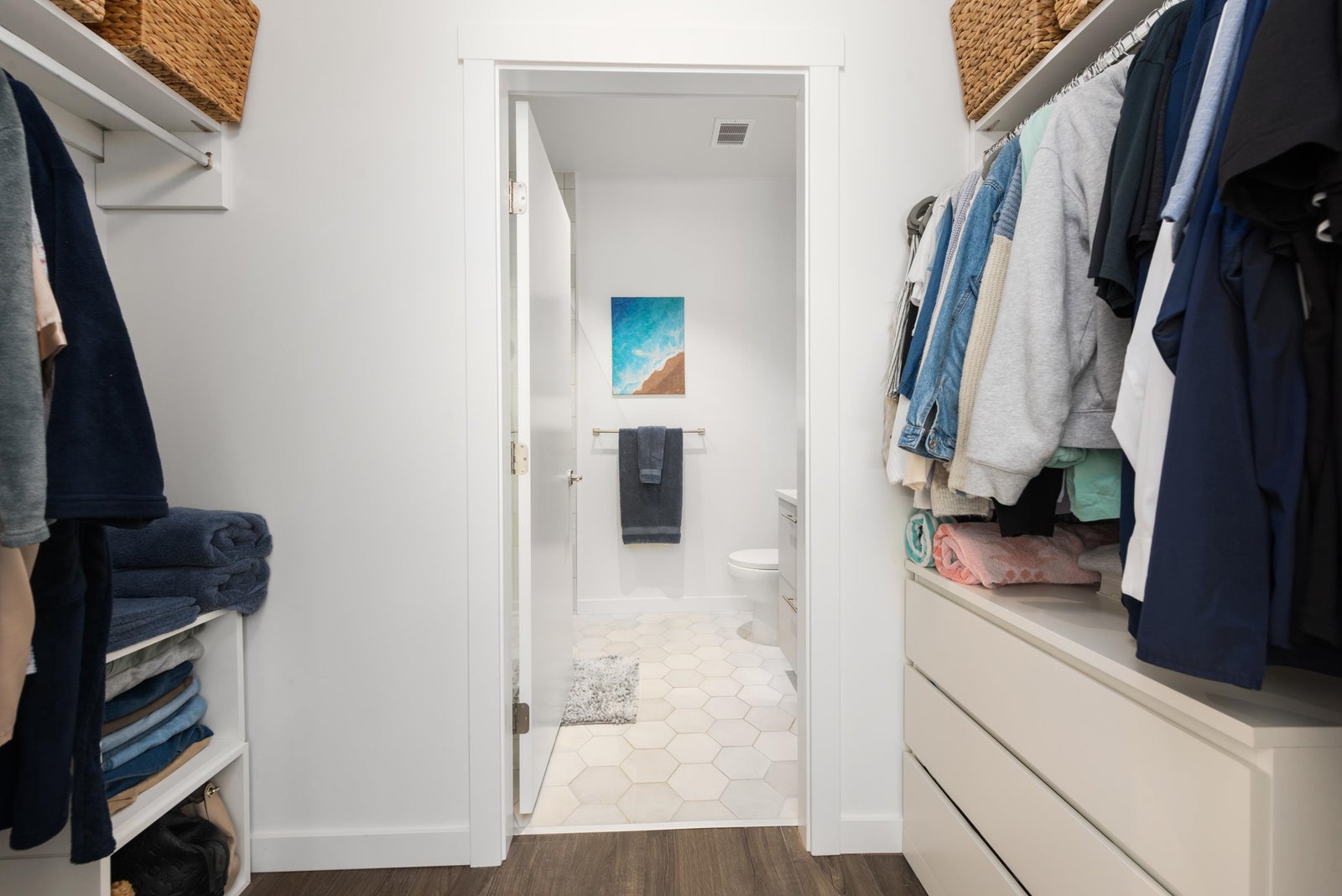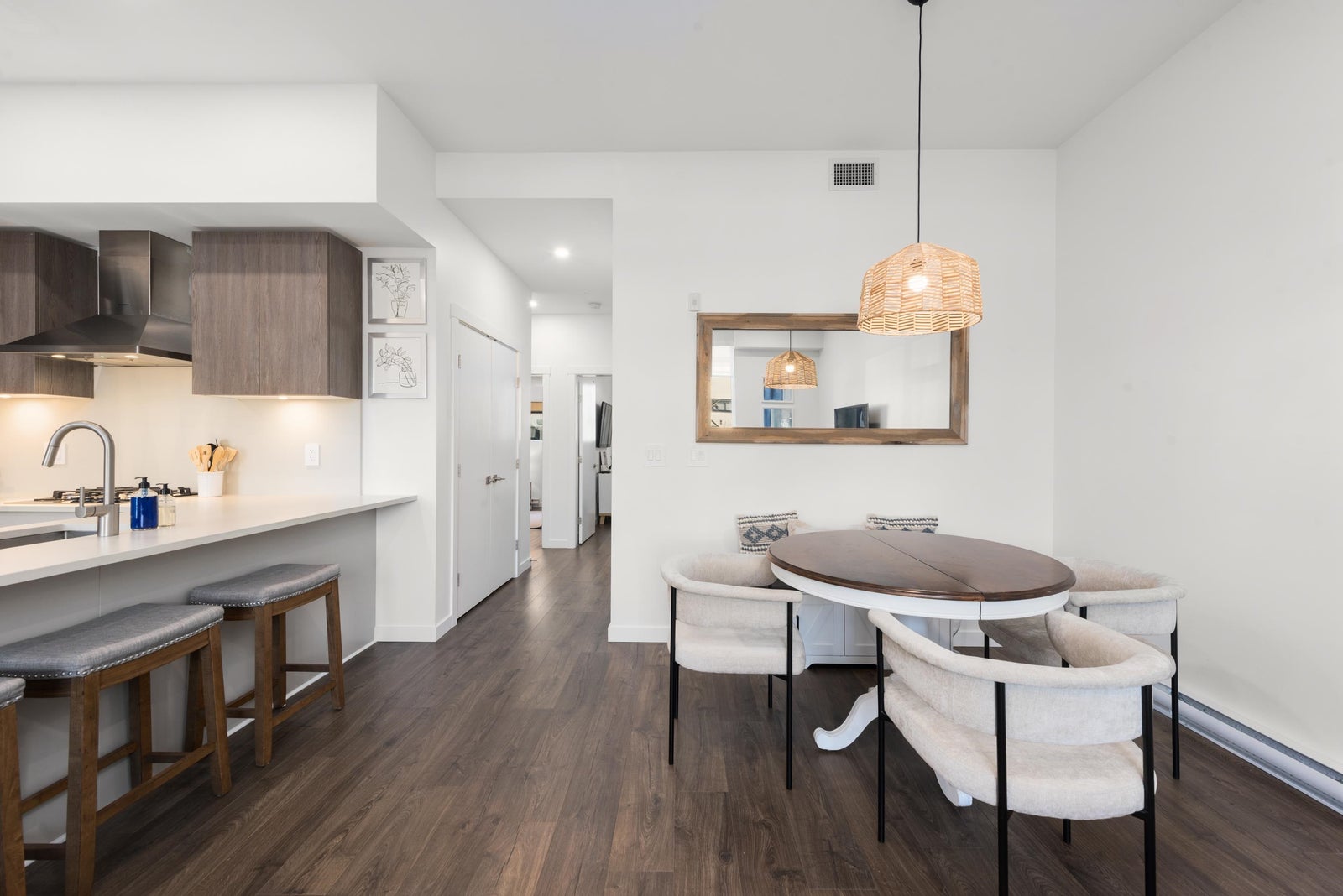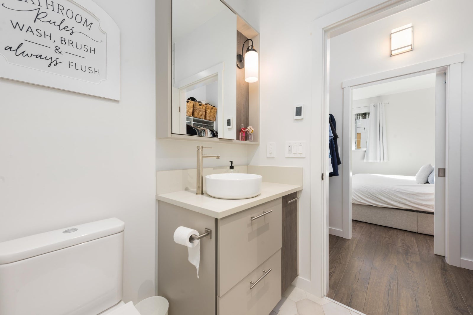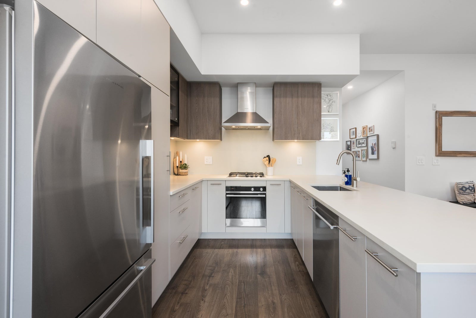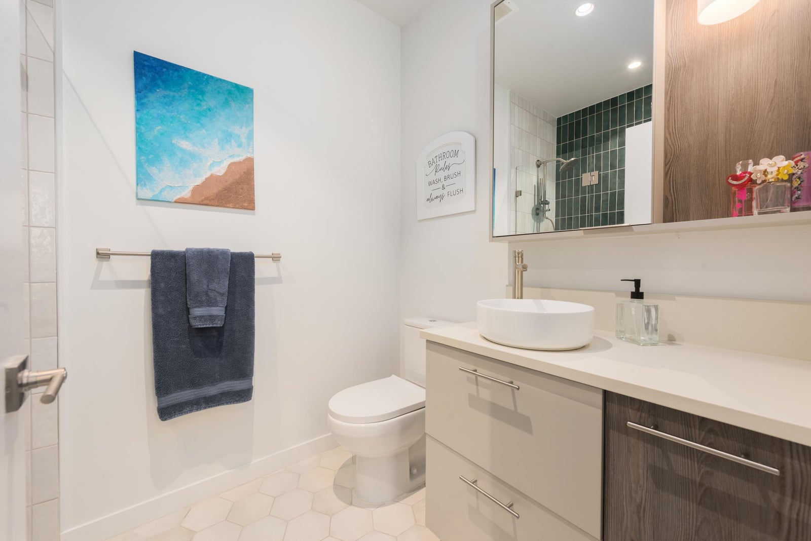 Tucked away on the quiet east side of District Flats, this 2 bed, 2 bath ground-floor corner home offers a rare blend of privacy, natural light, and thoughtful design. With 917 sqft of well-planned space, enjoy overheight ceilings throughout and soaring 12-ft ceilings in the living area, creating an open, airy feel rarely found on the ground level. This east-facing position brings softer morning light, cooler afternoons, and noticeably less foot and vehicle traffic for a more peaceful setting. The open layout flows to a spacious 171sqft patio, perfect for indoor-outdoor living. Steps to Southlands amenities, local shops, and trails, and a short walk to Boundary Bay Beach. Includes 2 underground parking stalls, bike storage, and a 3-year-old building still under warranty.